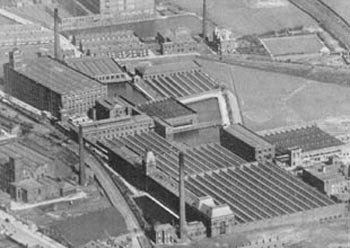 Aerial view of Sunnyside Mills, St Helens Road across the bottom left corner. Rumworth Mill is between this and the 1828 railway line. Then we have the Sunnyside Mills complex. Across the top right corner is the 1885 railway. In from there is the Sunnyside Hotel and to its left the long slope of Ellesmere Road leading up to the railway bridge.