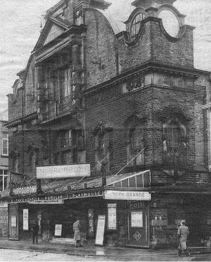3 The Hippodrome now has a glass shelter for the queues. Repertory Platers are mentioned on the permanent boards. Today's performance is "Mock Orange" by Peter Blackmore, a comedy for nine cast members published in 1960.