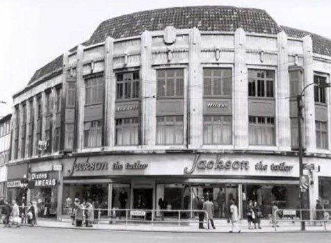 Note Alexandre’s Tailors on the corner opposite where it was in the 1950s 60s.