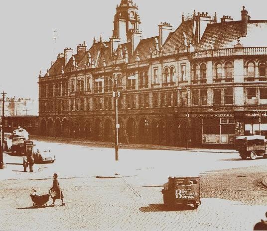Metro has been replaced by Allen’s the cleaners. On the right is the Hippodrome Theatre and the Hen and Chickens. On the right edge of the picture is one of Magee’s warehouses a building dating back to the days when there was a station there not too much after 1828.