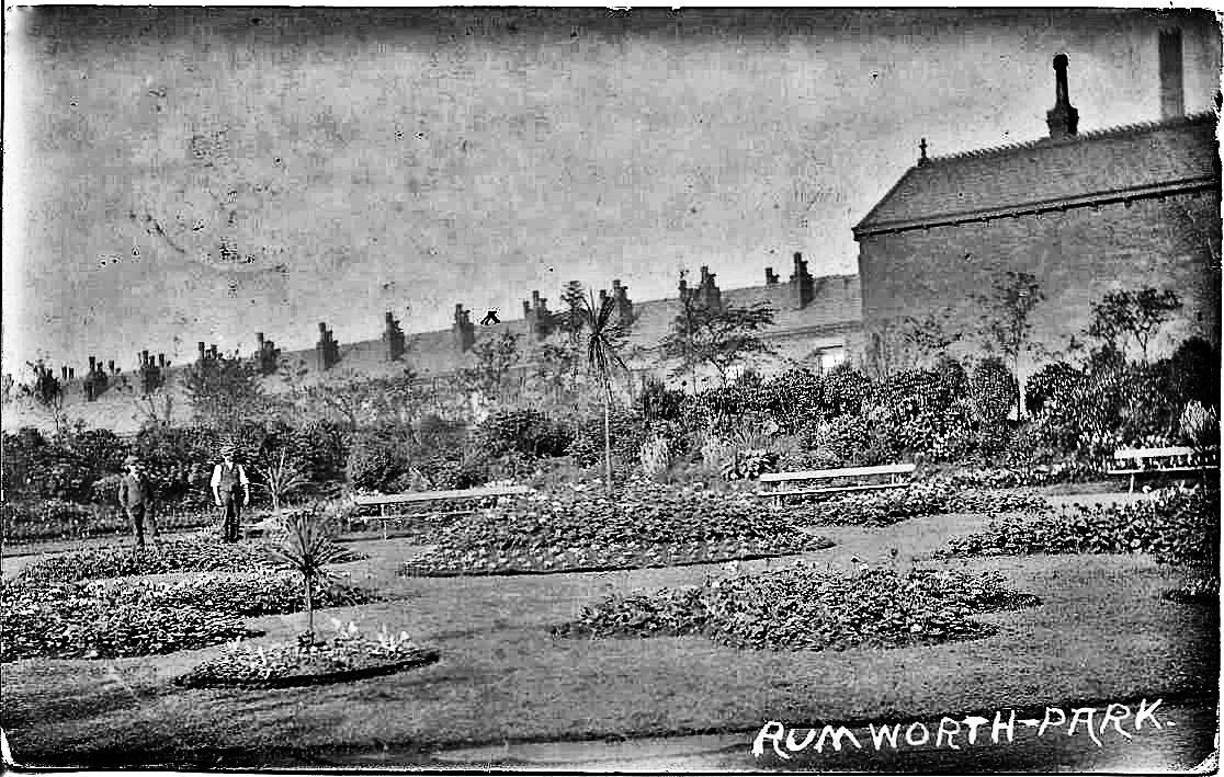 Willows Lane gate of Willows Park (Rumworth recreation ground). The white building had been the manse for St George the Martyr’s. It became the Willows pub but was closed by 2010.